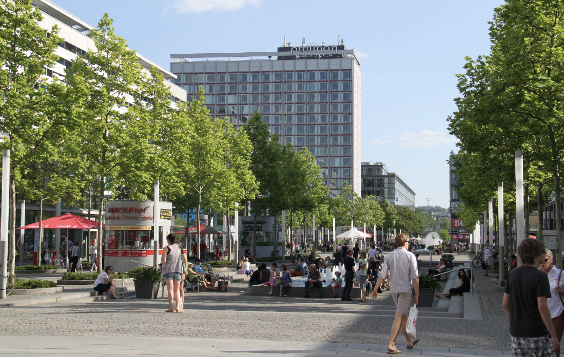 신시가지 교통의 중심지로 레스토랑과 카페, 다양한 상점들이 있는 곳입니다.