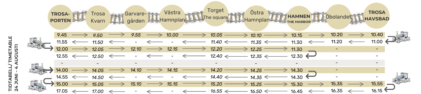 트로사포르텐에서 항구까지 운행하는 Blue Train으로 미니 기차를 타고 마을 구경을 하실 수 있습니다.