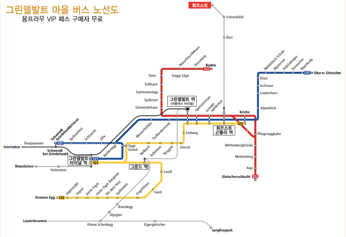 - 그린델바트 터미널 → 피르스트 곤돌라 역 : 121번 버스 탑승