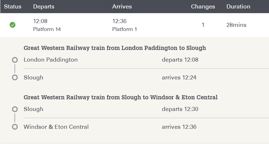 - 런던 패딩턴 역 (London Paddington) → 슬라우 역 (Slough) : 환승역 → 윈저&이튼 센트럴 역 (Windsor & Eton Central) 도착.