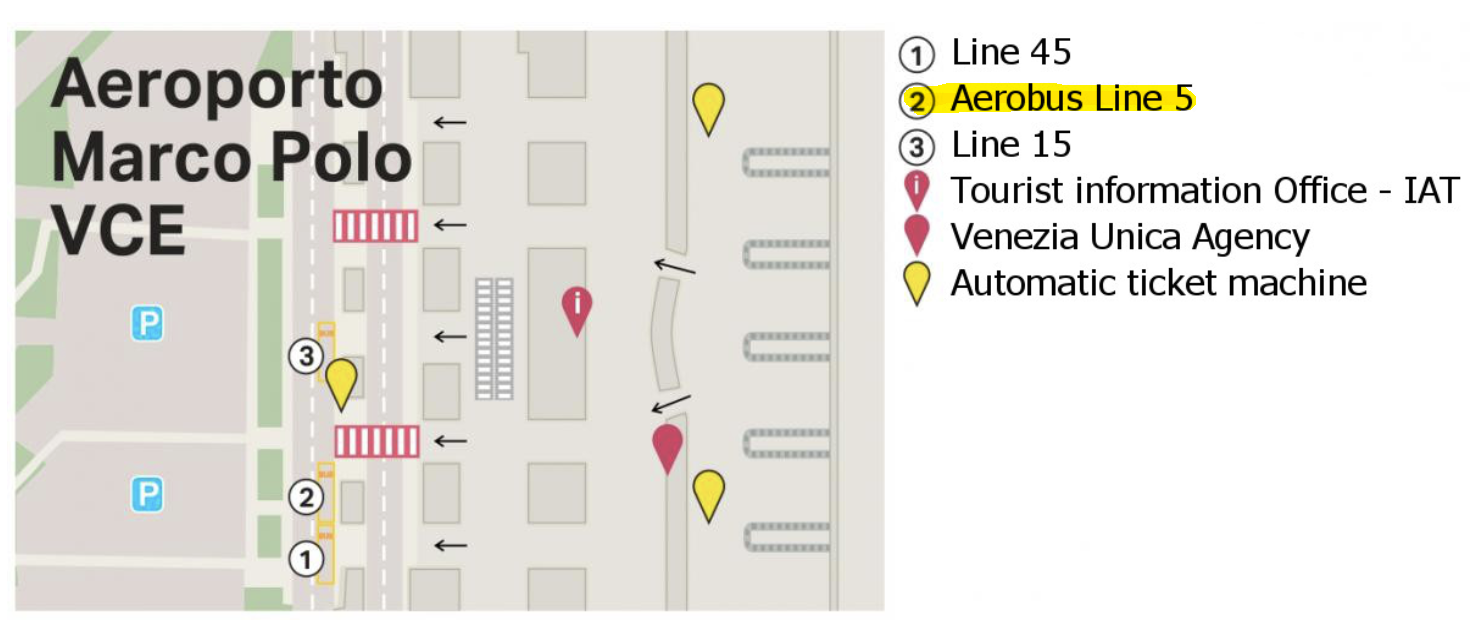 시내까지 가는 가장 저렴한 방법으로 도시버스인 Actv 5번 버스를 이용하면 20~30분이 소요됩니다.
