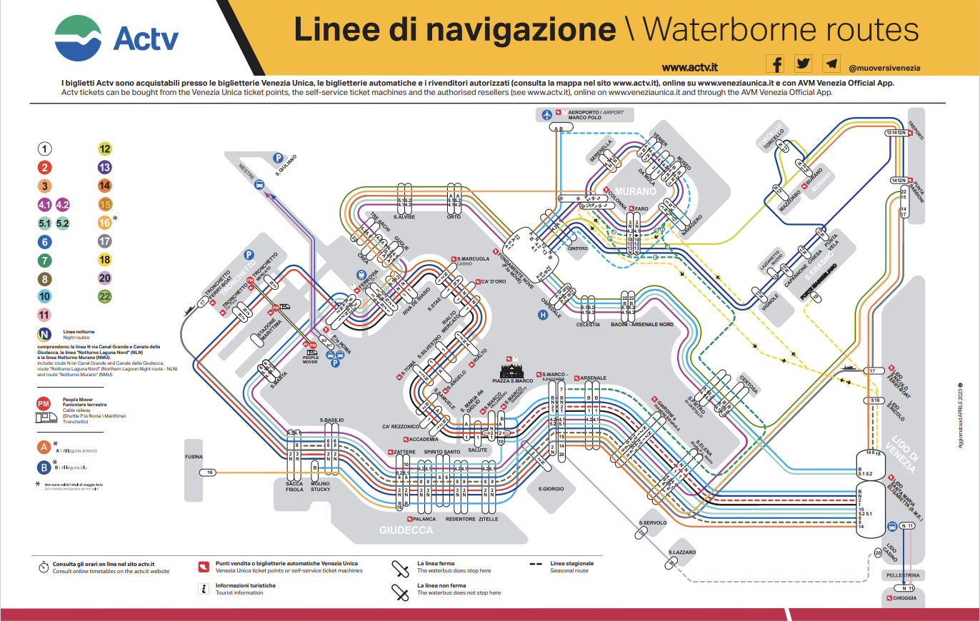 1번 : P.LE ROMA - FERROVIA - RIALTO - S.MARCO - LIDO S.M.E.