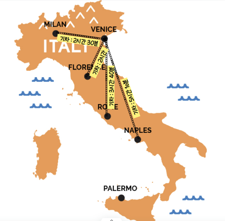 베네치아는 유럽의 주요 도시에서 고속 열차, 항공편으로 쉽게 이동할 수 있습니다.