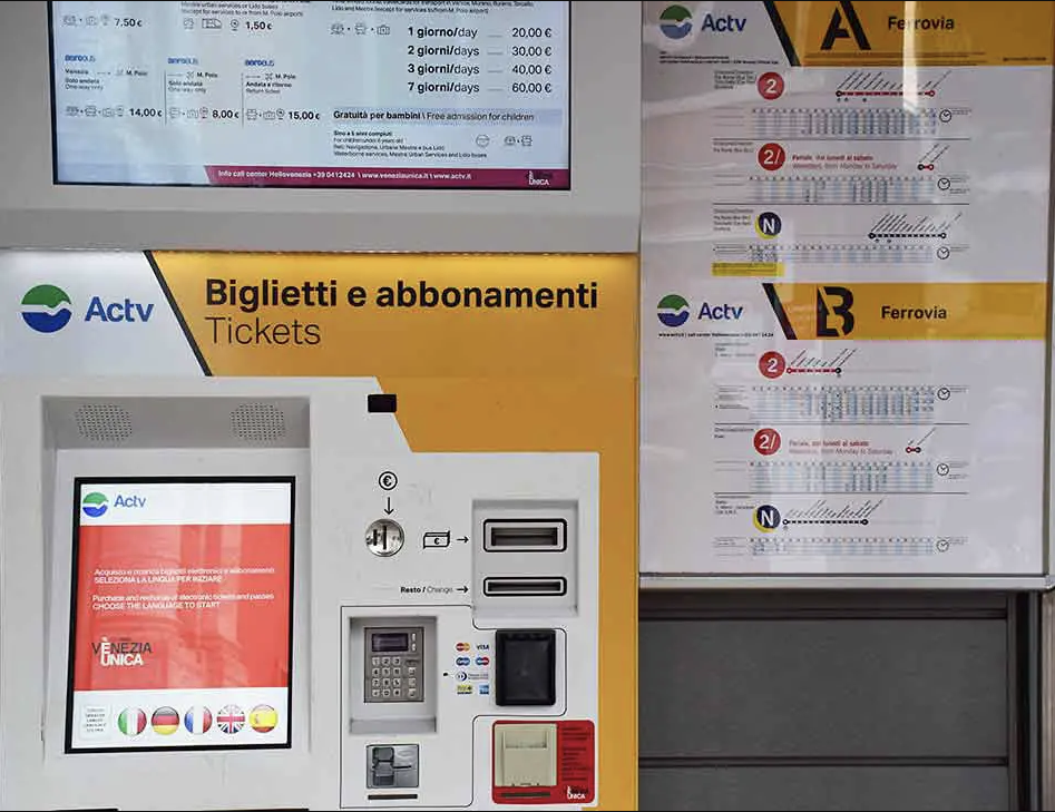 (산타루치아 기차역 인포메이션 , Tabacchi, 티켓 머신에서 구입 가능합니다.)