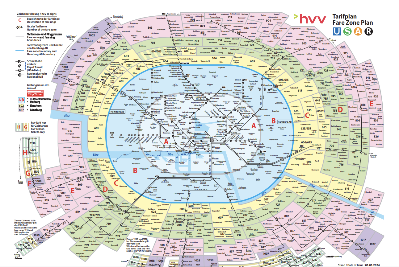 함부르크 대중교통은 Zone으로 구분되며 S Bahn, U Bahn, 트램, 버스 등을 이용하실 수 있습니다.