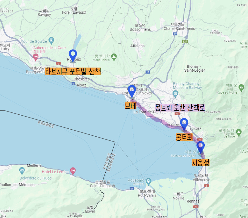 - 출발지 : 몽트뢰(Montreux) → 도착지 : 시옹성(Château-de-Chillon (lac))