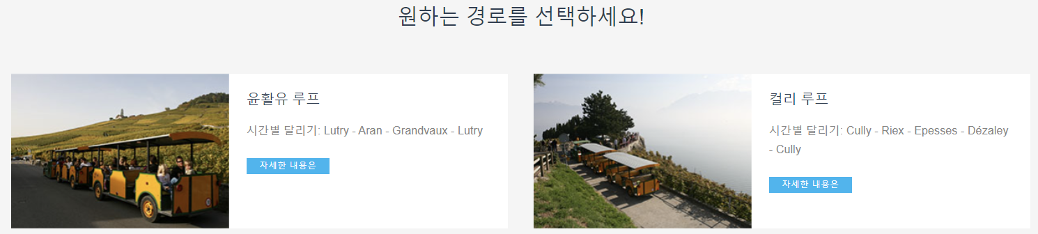 하이킹이 부담스러우신 분들은 라보 익스프레스라는 라보 지역을 둘러볼 수 있는 관광열차를 이용가능하며, Lutry와 Cully 두 곳에서 운영됩니다.