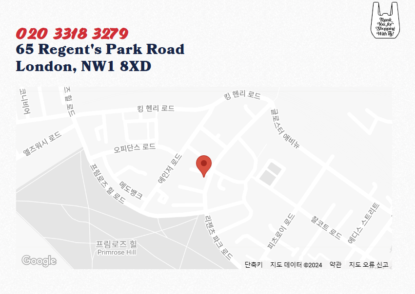 주소 : 65 Regent's Park Rd, London NW1 8XD, United Kingdom