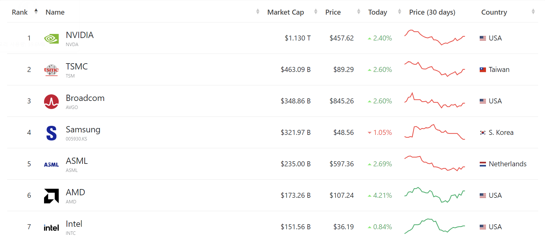 AMD의 시가총액은 $173.26B로 반도체 업계 중 6위를 기록하고 있으며 인텔보다 높은 순위입니다. 52주 최저가는 54불, 최고가는 132불이며 AMD의 현재 주가는 연초 대비 67% 상승한 107불을 기록하고 있습니다. 최고가는 2022년 161불을 기록하였으며 현재 주가는 최고가 대비 33% 하락한 상태입니다. 최근 AMD는 인공지능 소프트웨어 부문을 강화하기 위해 오픈 소스 AI 기업인 노드 AI를 인수할 것이라고 밝히며 주가가 상승하고 있습니다. 이번 인수는 엔비디아와 경쟁을 강화하기 위한 전략이며, 노드 AI 인수는 'AI 고객들에게 AMD 하드웨어에 맞게 조절할 수 있는 고성능 AI 모델을 쉽게 배치할 수 있는 소프트웨어를 제공하는 자사의 능력을 크게 향상할 수 있을 것을 기대한다'라고 전하기도 했습니다. 올해 2분기 매출은 지난 동기 대비 18% 감소하며 주가가 부진했으나 향후 AMD의 성장 전략을 통해 주가 상승을 기대해 볼 수 있습니다.