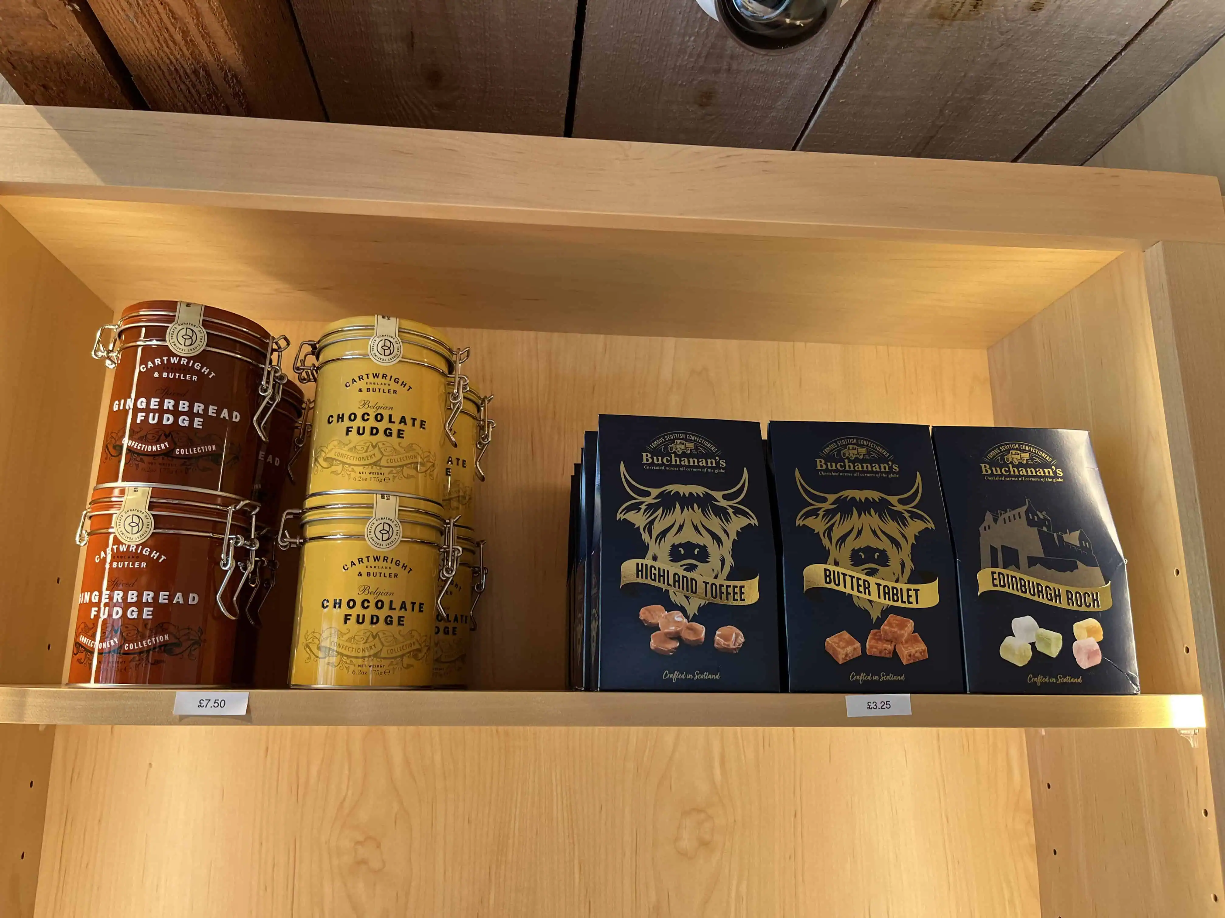 티, 초콜릿, 쇼트브레드 과자들도 판매하고 있었다.