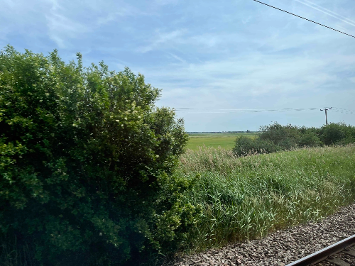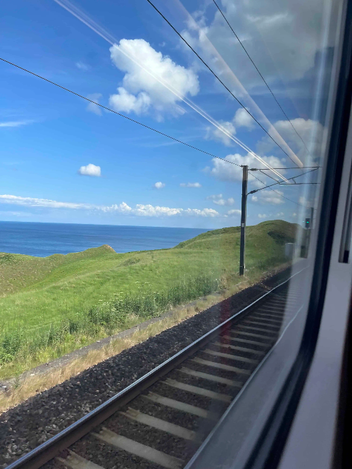 우리는 역방향 좌석을 예약해서 거꾸로 갔다.