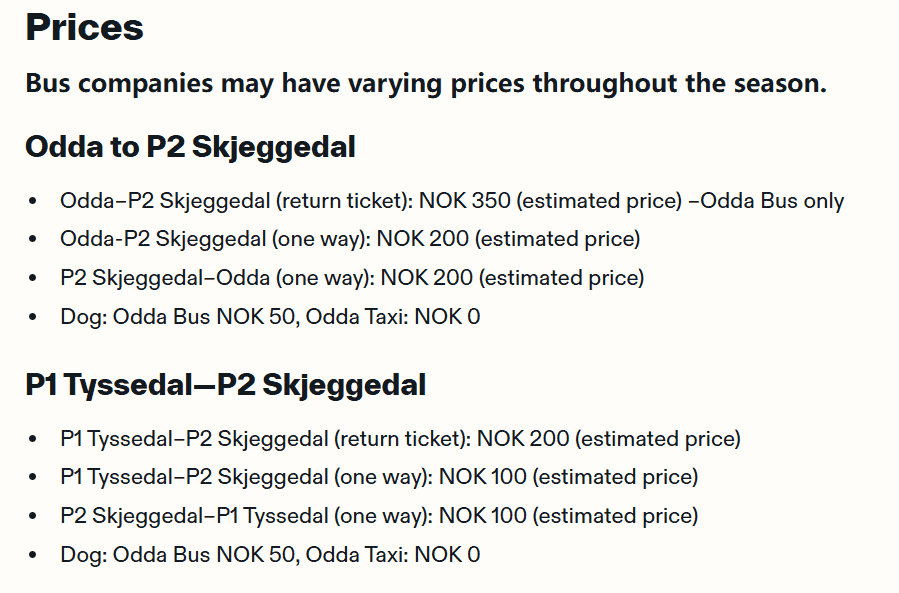 ✔️버스 루트 : Odda → P1 Tyssedal → P2 Skjeggedal / P2 Skjeggedal → P3 Magelitopp