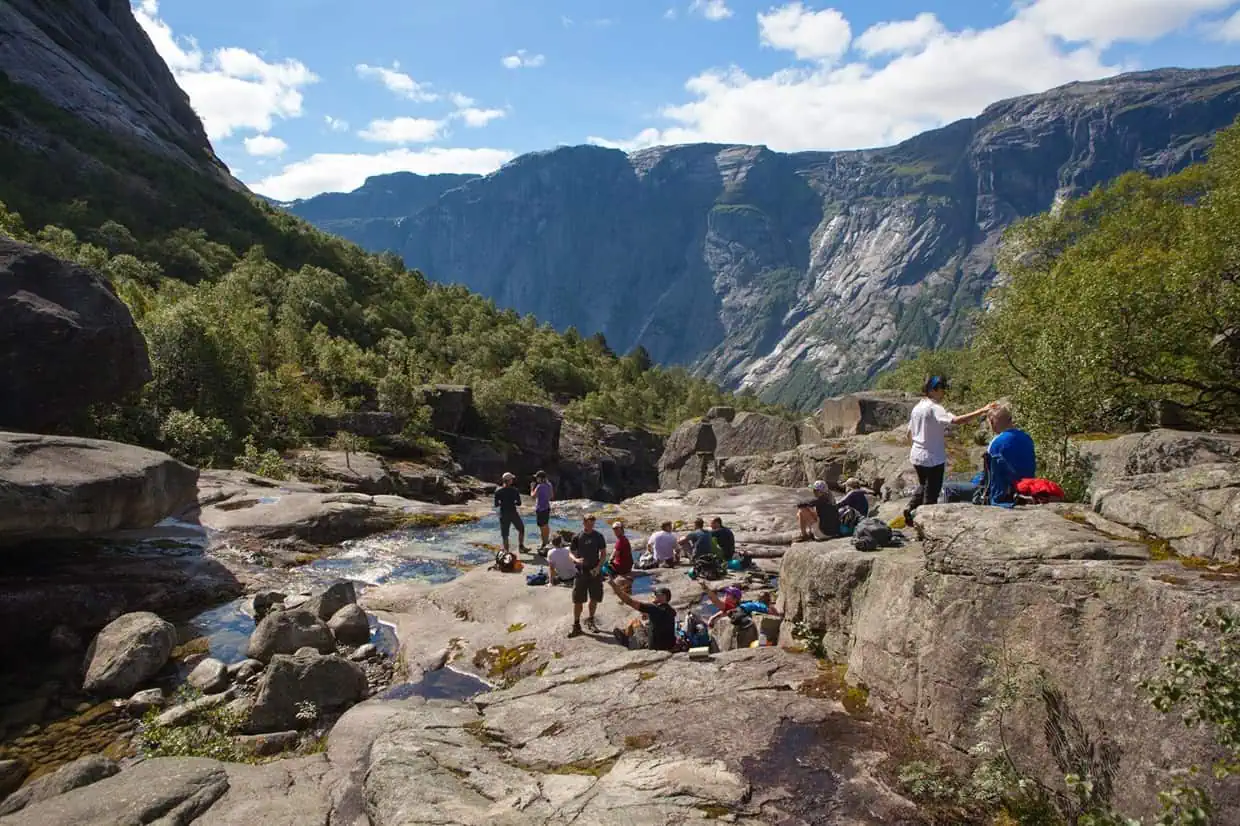 | P2 (Skjeggedal) | 약 28km | 10 ~ 12시간 | P2에서 P3까지의 4km (고도 400m 이상) 급경사 아스팔트 길을 걸어서 올라가야 해, 초반 체력 소모가 매우 큽니다. |