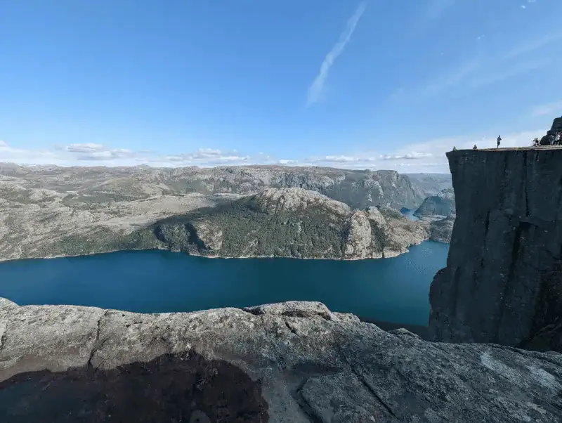 - 뤼세 피오르드의 깊은 협곡과 1,000m 아래 낭떠러지의 짜릿한 경관을 감상할 수 있습니다.